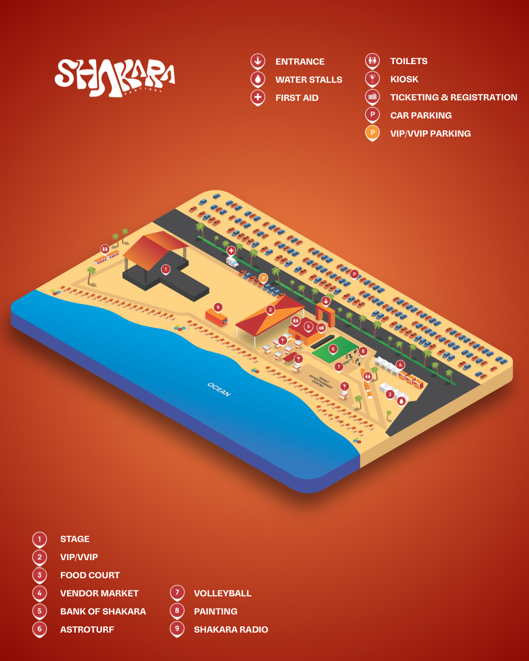 Explore the festival grounds at Nautica Beach Resort, Lagos. Find stages, food courts, facilities, and more.